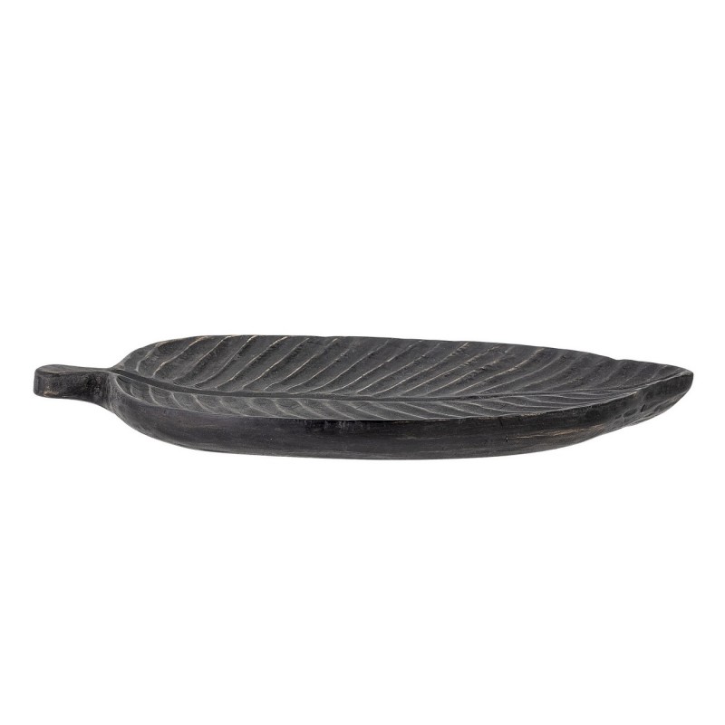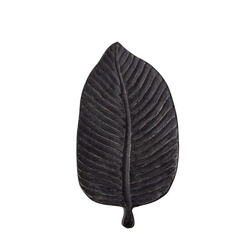 bloomingville petit plateau bois fonce sculpté forme feuille