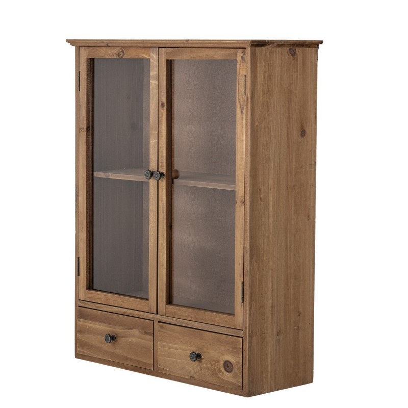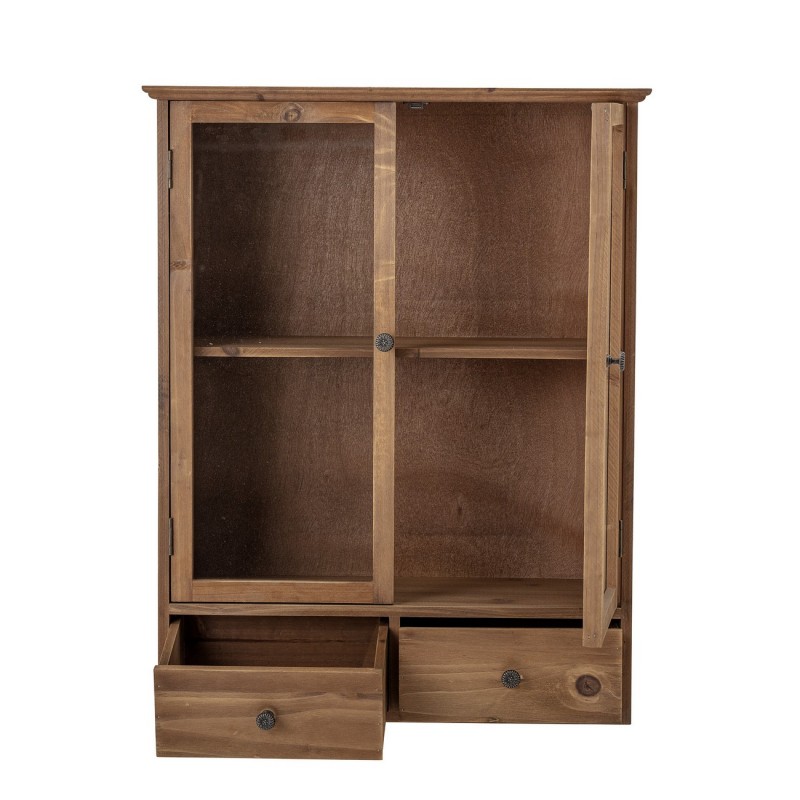 bloomingville vitrine murale armoire bois fonce vitre 2 tiroirs alfie