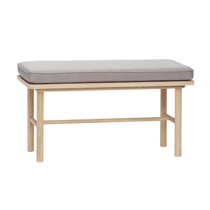 hubsch petit banc bois clair style scandinave avec coussin gris