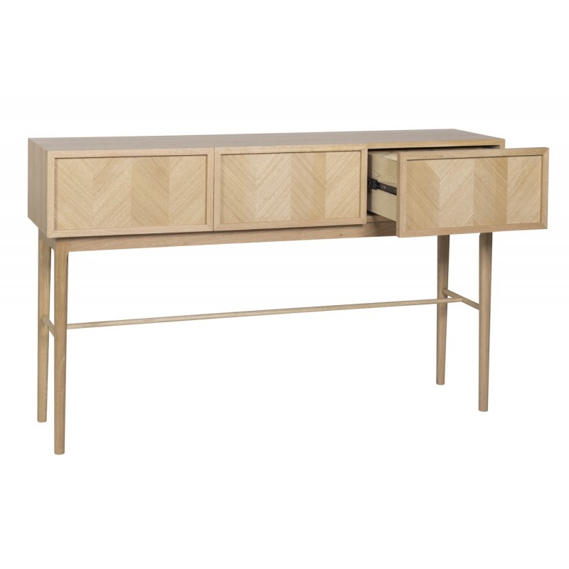 hubsch grande table console bois clair scandinave rangement 3 tiroirs