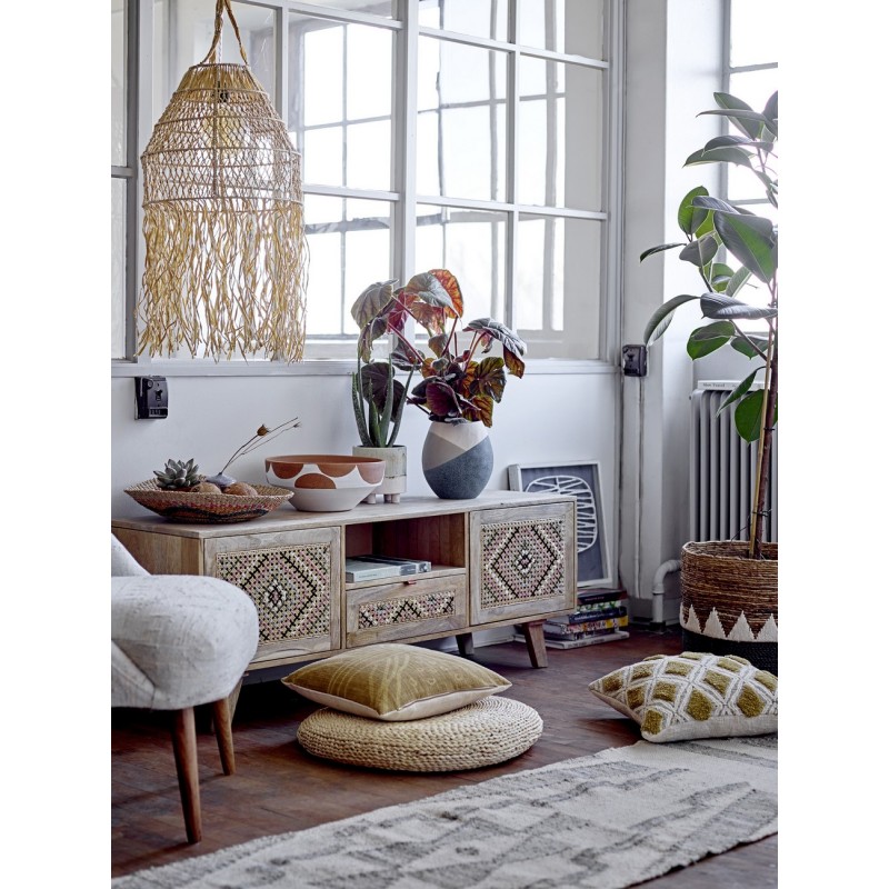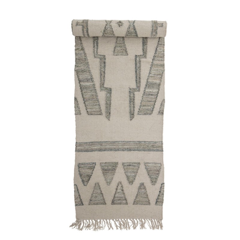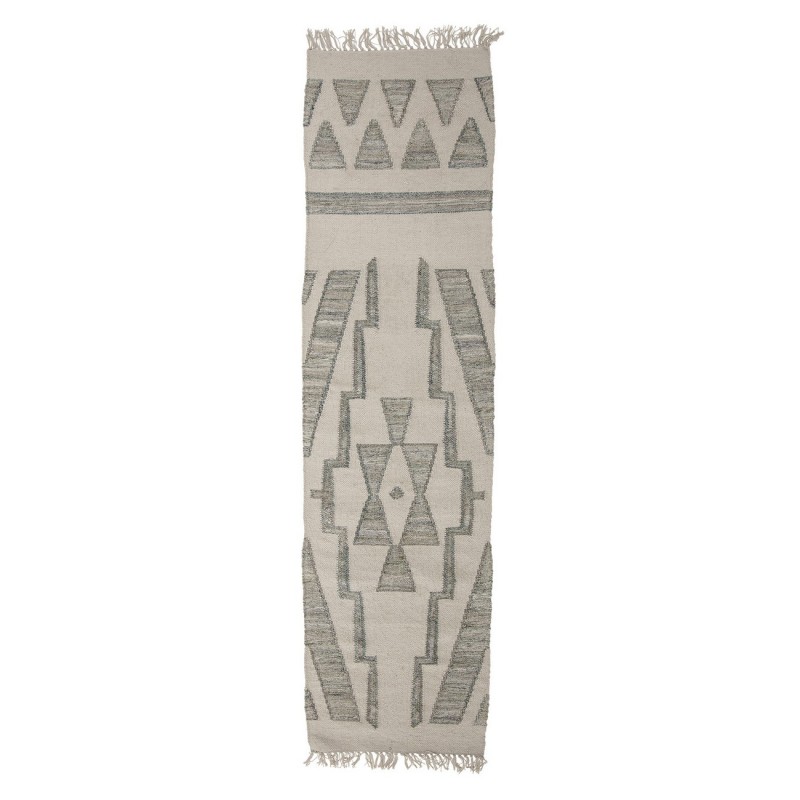 bloomingville tapis long laine motif ethnique vert blanc ecru delara
