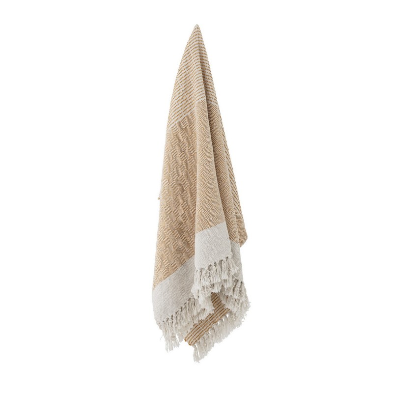 bloomingville plaid coton recycle jaune moutarde franges demi