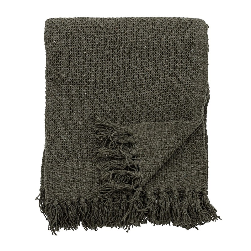bloomingville plaid coton recycle vert fonce uni franges