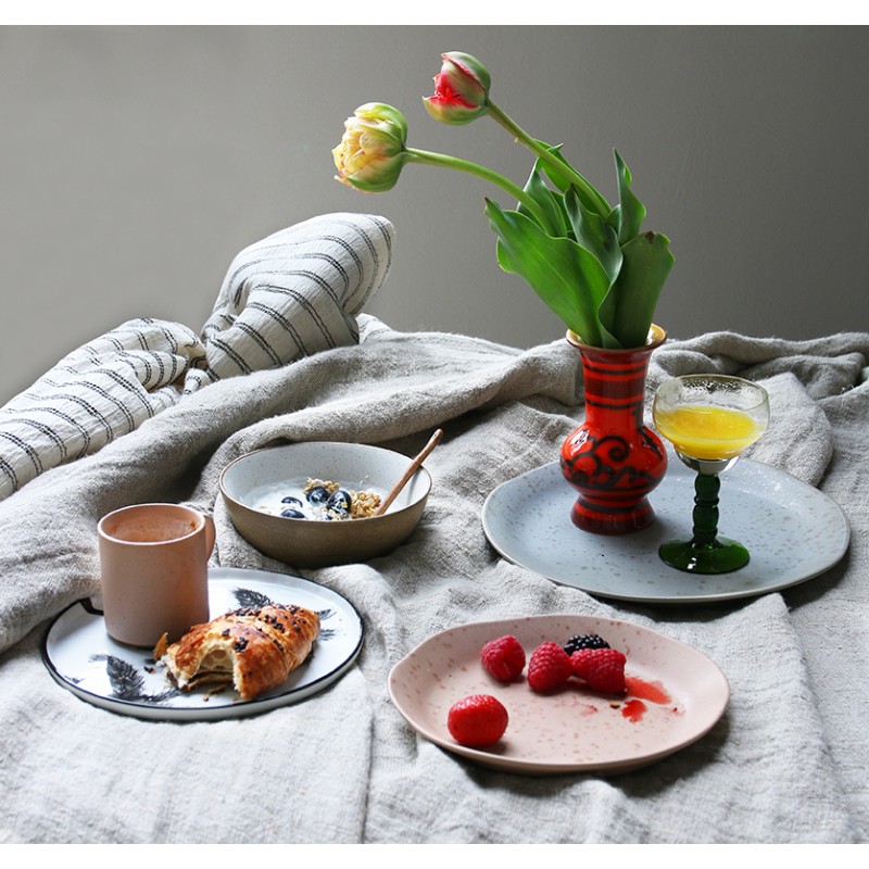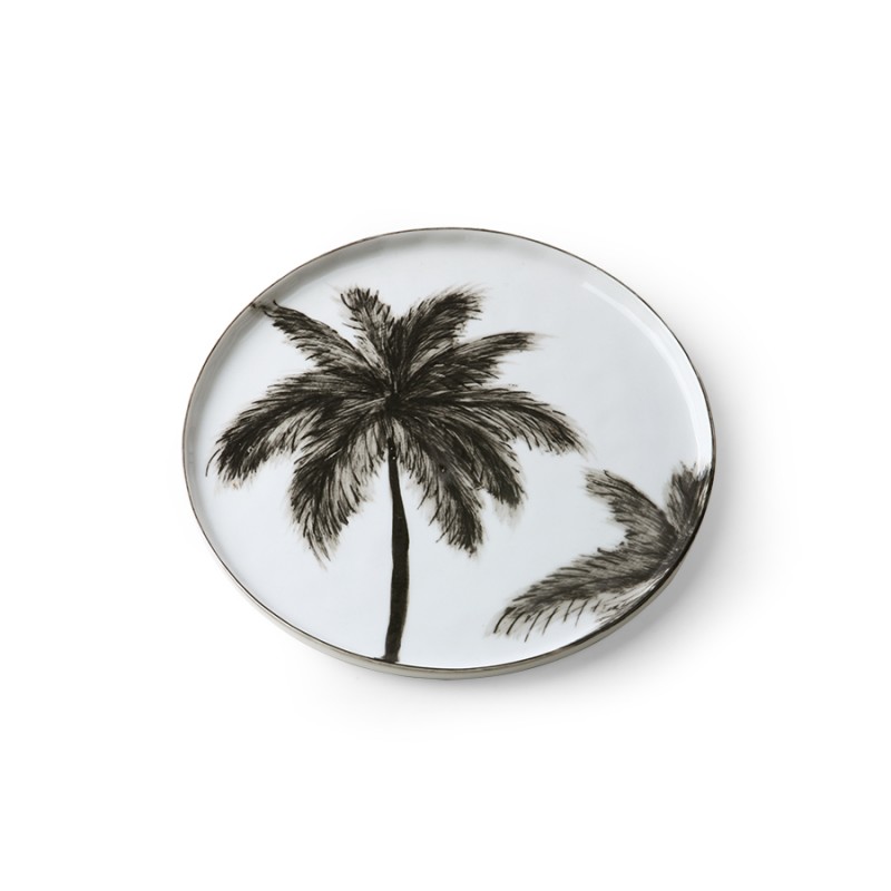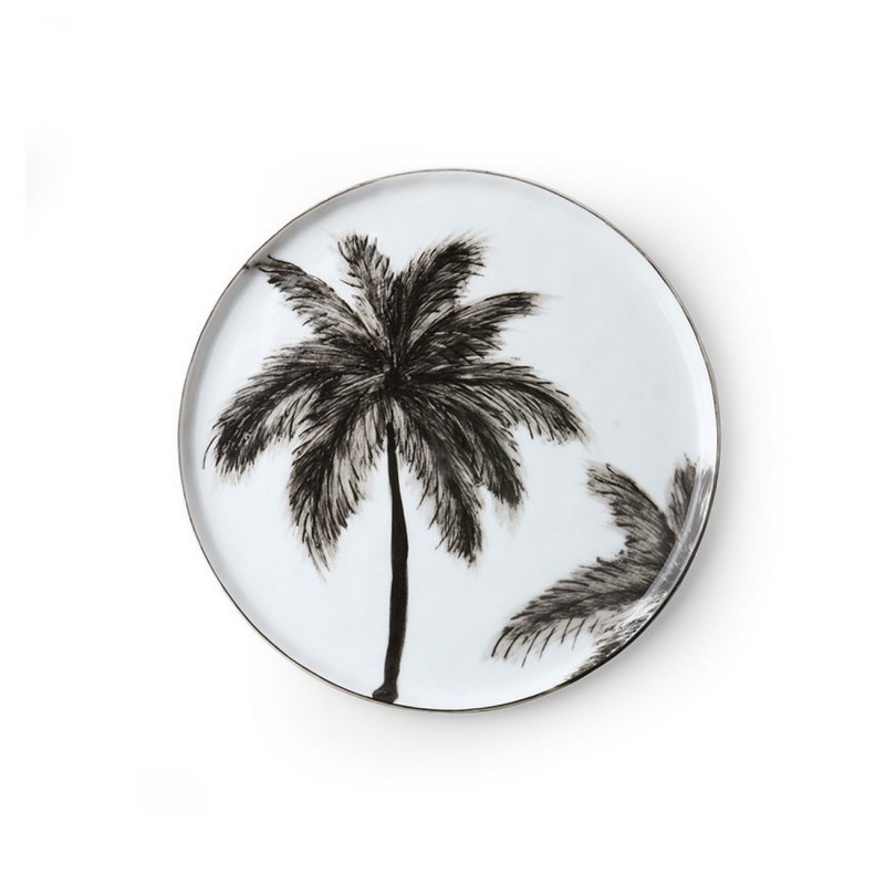hk living petite assiette porcelaine palmiers noir blanc palms