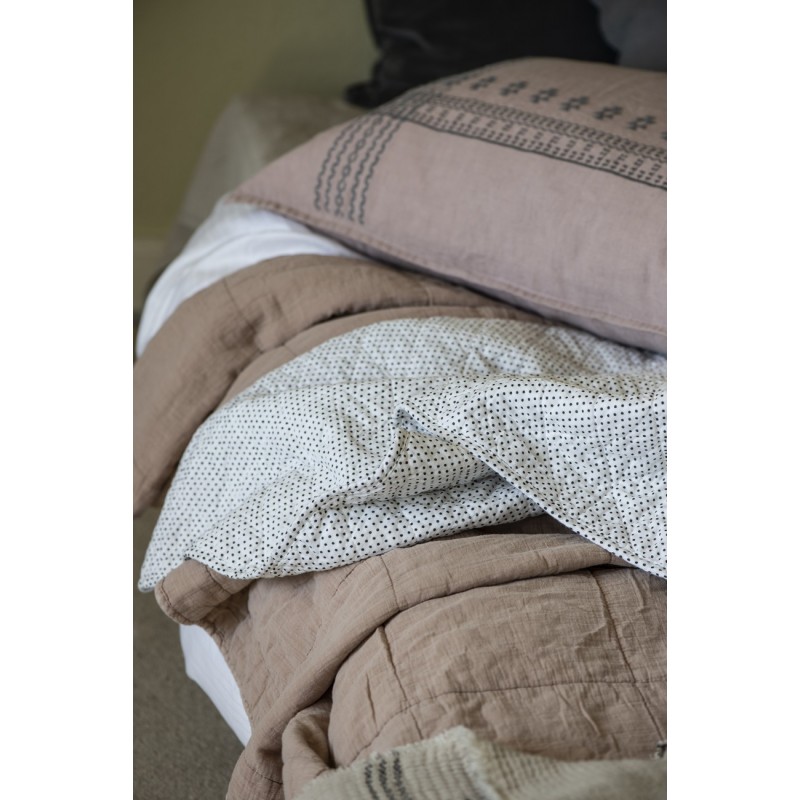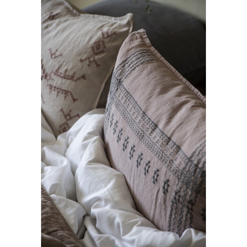 ib laursen grande housse de coussin lin brode mauve rose 50 x 70