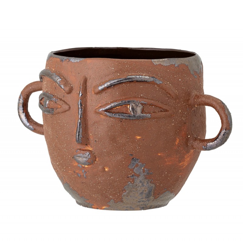 bloomingville cache pot gres marron visage oreilles vintage vieilli