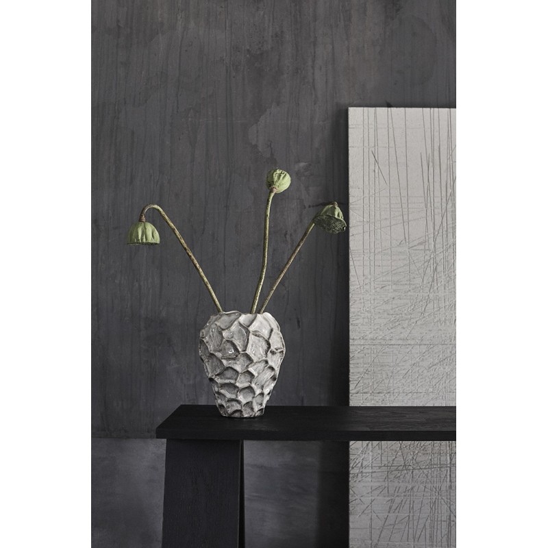 vase sculptural surface texturée grès blanc brillant Muubs Soil