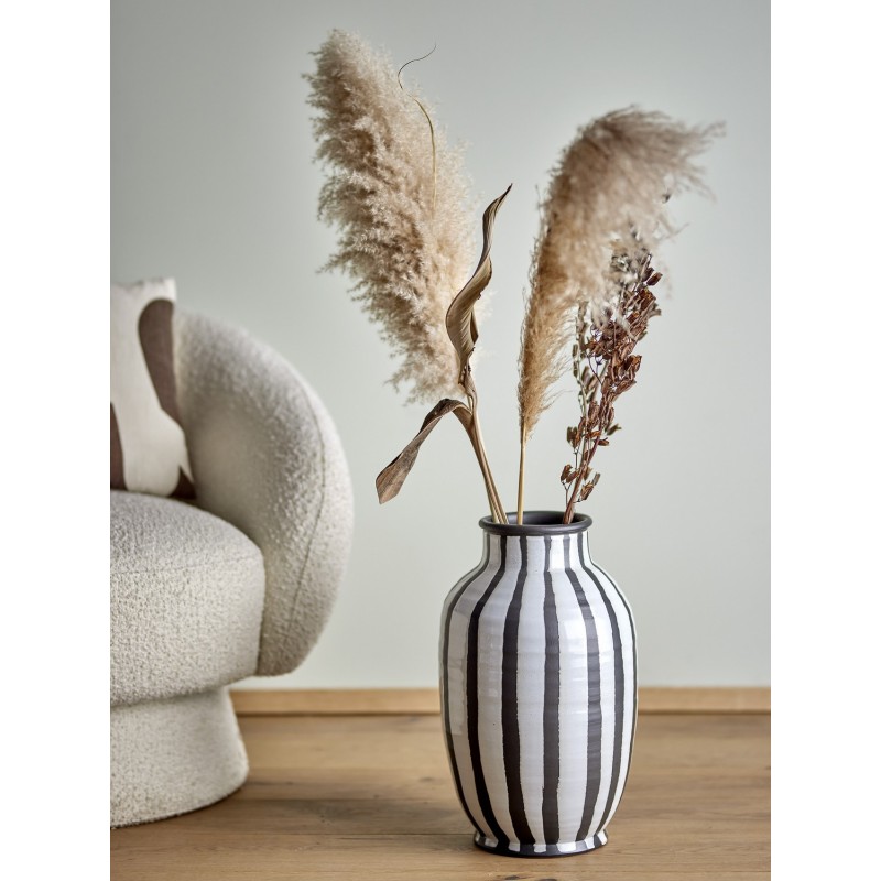 bloomingville grand vase de sol rayures noir blanc terre cuite schila
