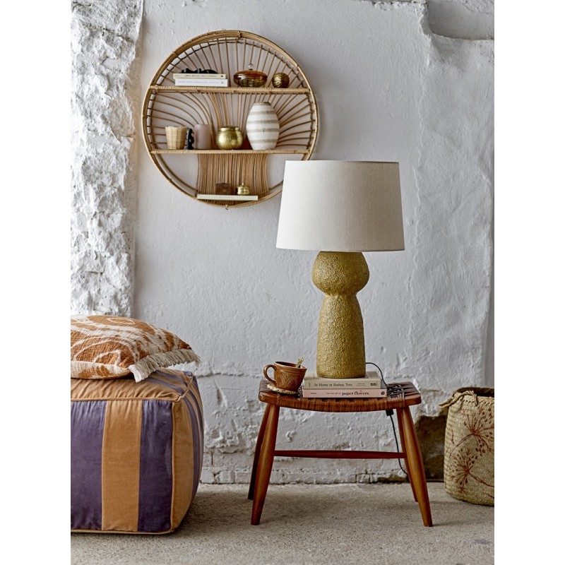 bloomingville lampe de table gres jaune abat jour coton blanc ecru