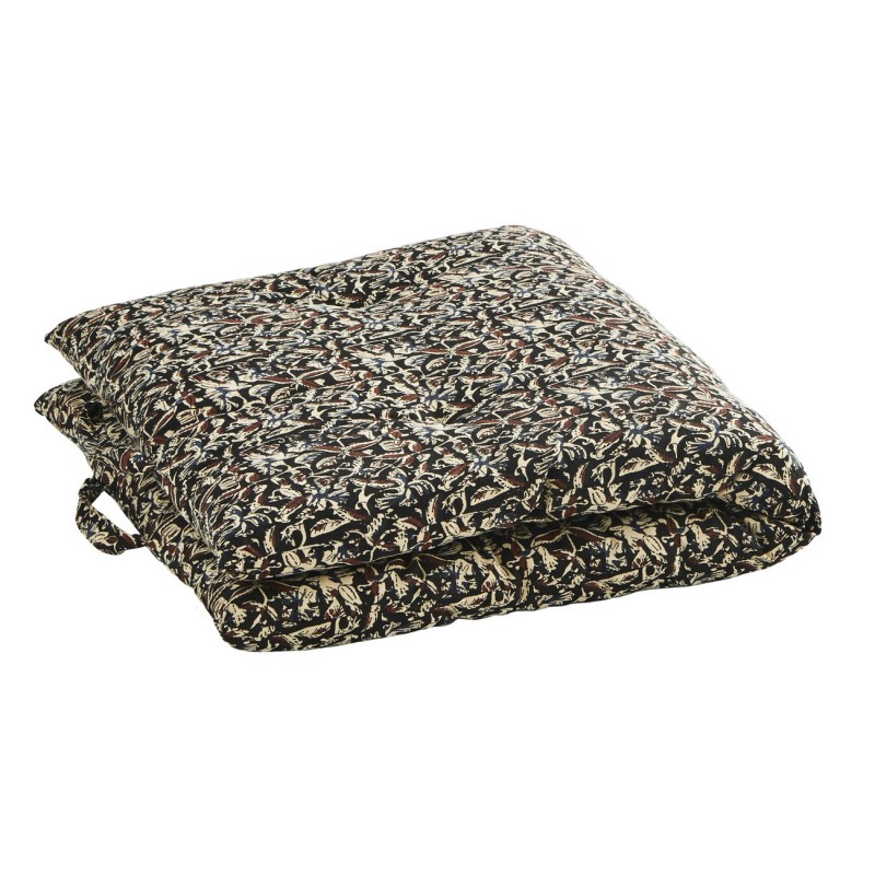 matelas de sol indien coton imprime noir fleuri madam stoltz