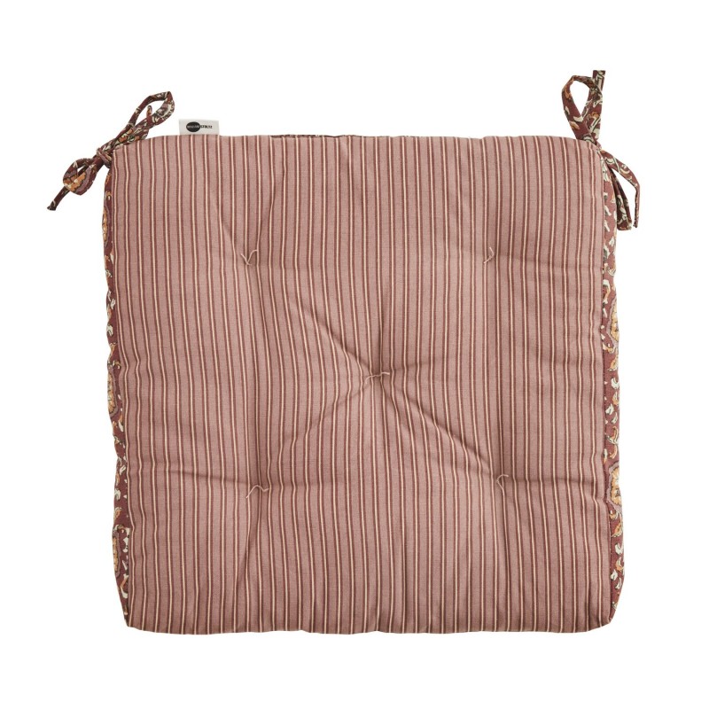 madam stoltz galette de chaise reversible double face coton imprime fleuri rouge
