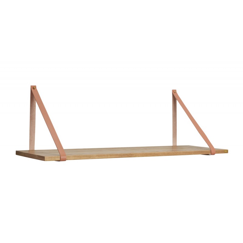 hubsch etagere murale fine epuree bois clair sangle cuir