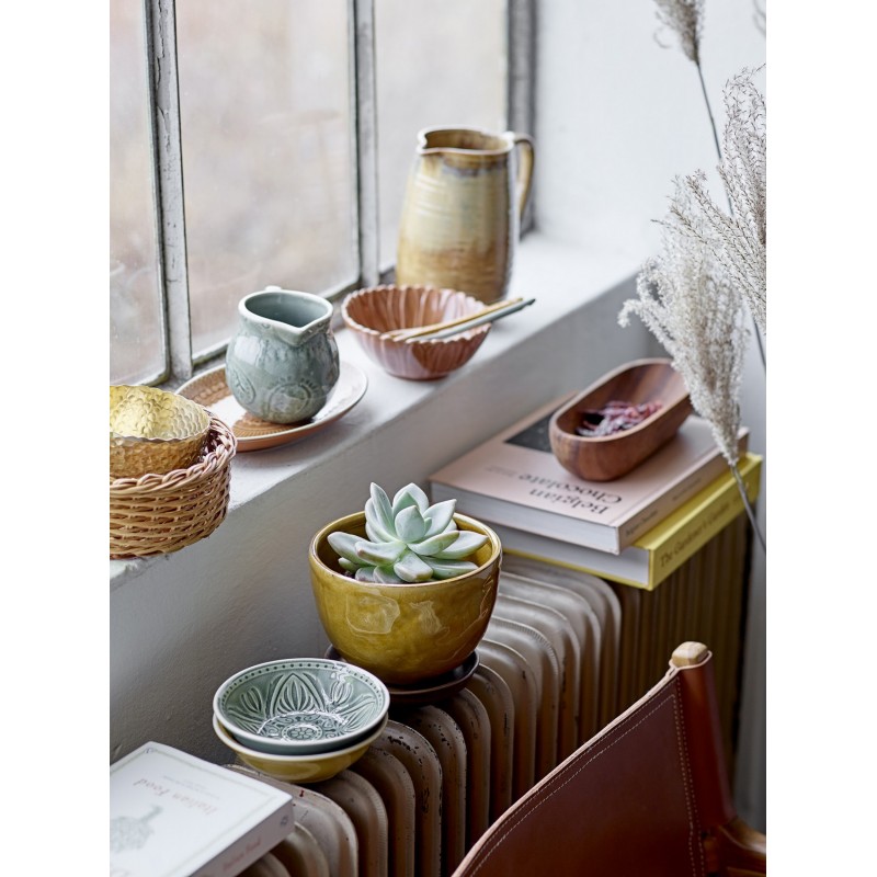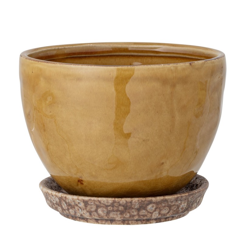 bloomingville poterie artisanale cache pot emaille jaune moutarde