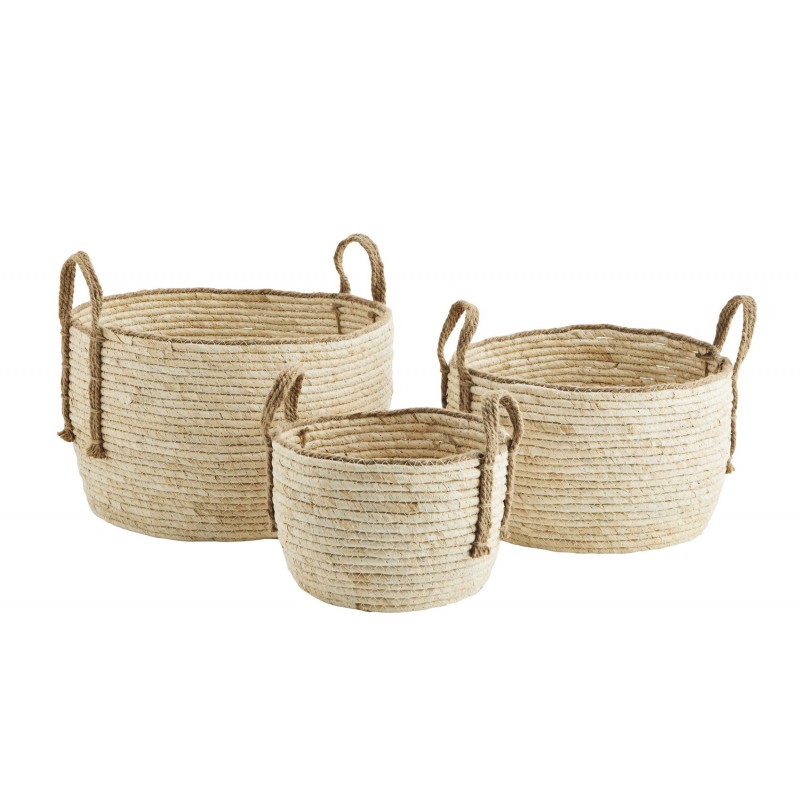 madam stoltz panier tresse feuilles de mais beige set de 3