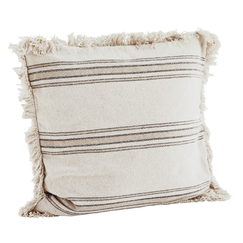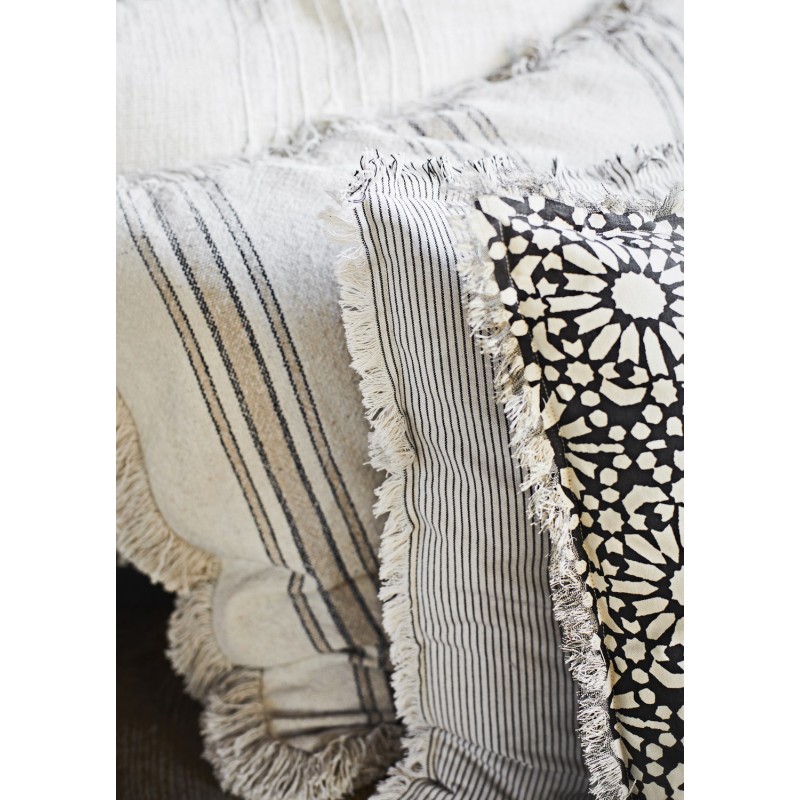 madam stoltz grande housse de coussin coton blanc ecru rayres franges
