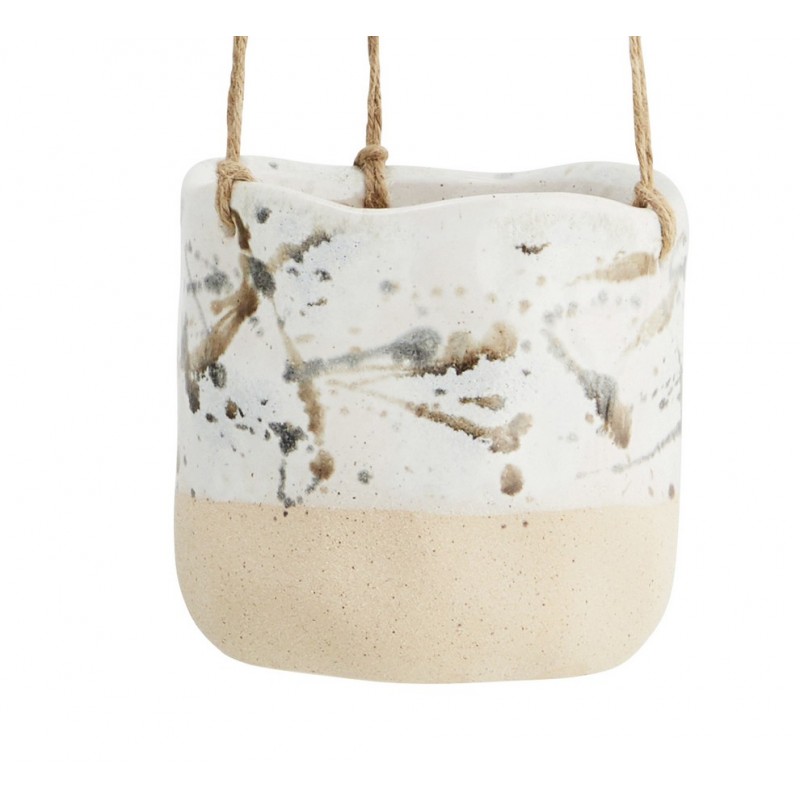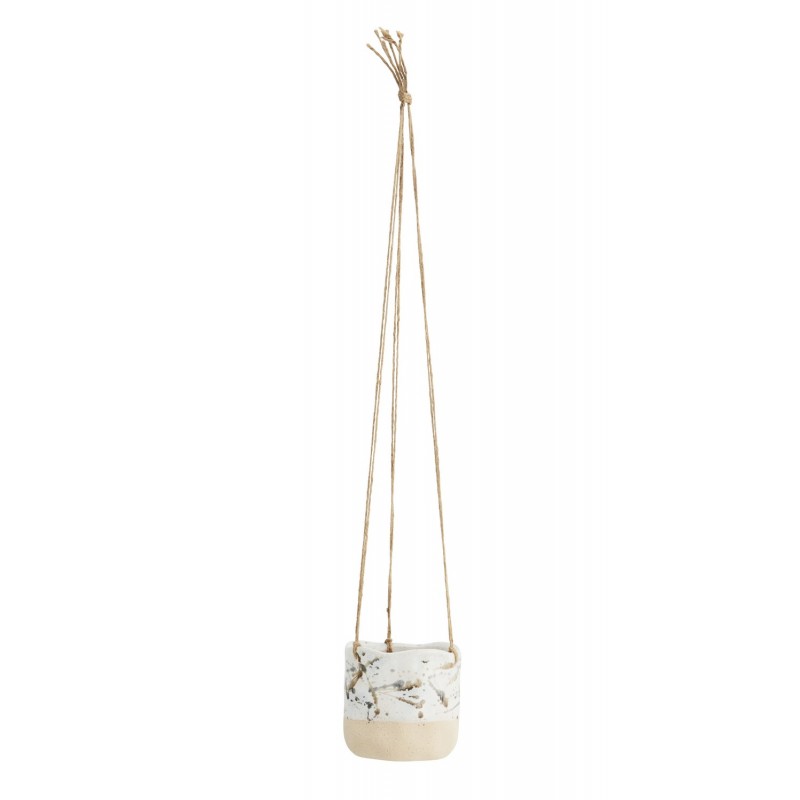 madam stoltz cache pot suspendu gres beige motif corde jute