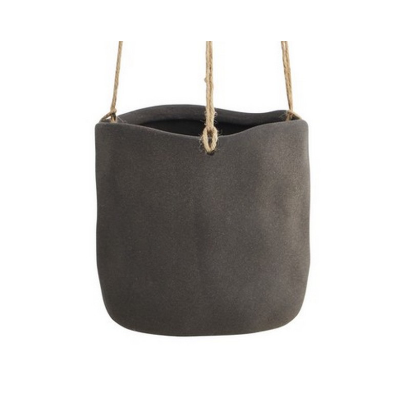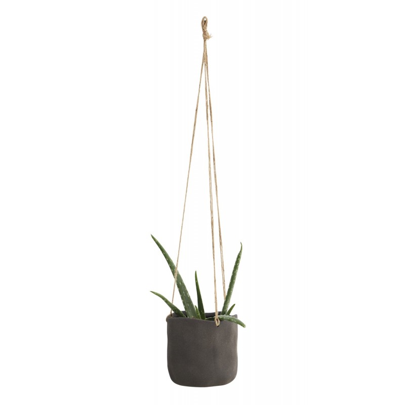 cache pot suspendu gres noir poterie artisanale jute madam stoltz