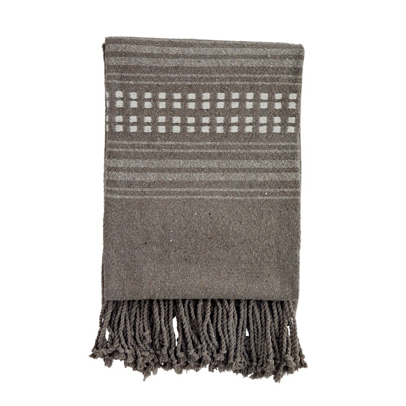 madam stoltz plaid coton recycle gris taupe rayures franges