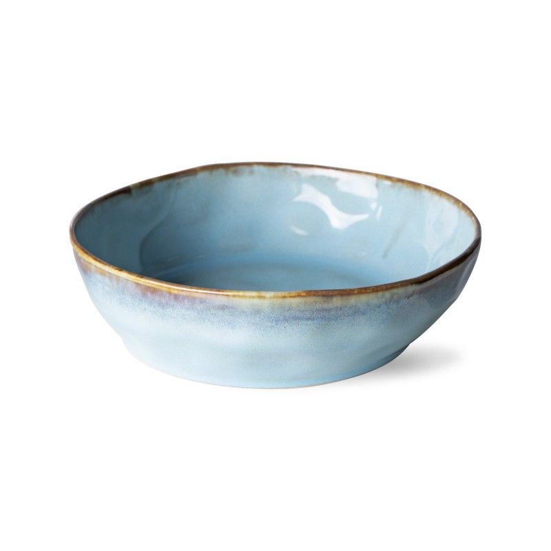 hk living assiette creuse artisanale poterie gres bleu lagune