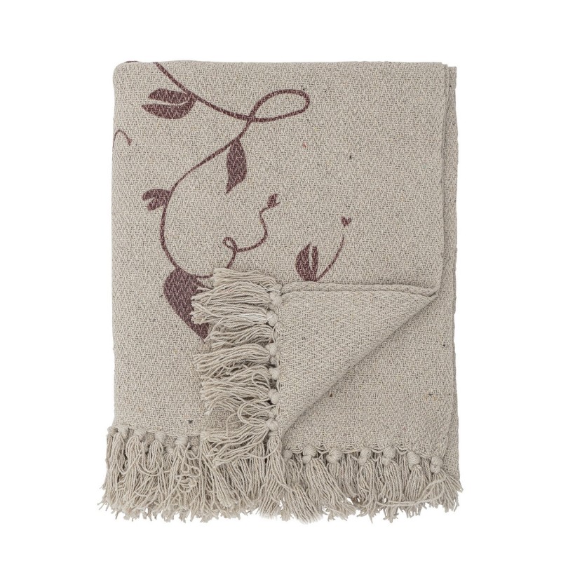 bloomingville plaid coton blanc ecru fleur mauve violet faria