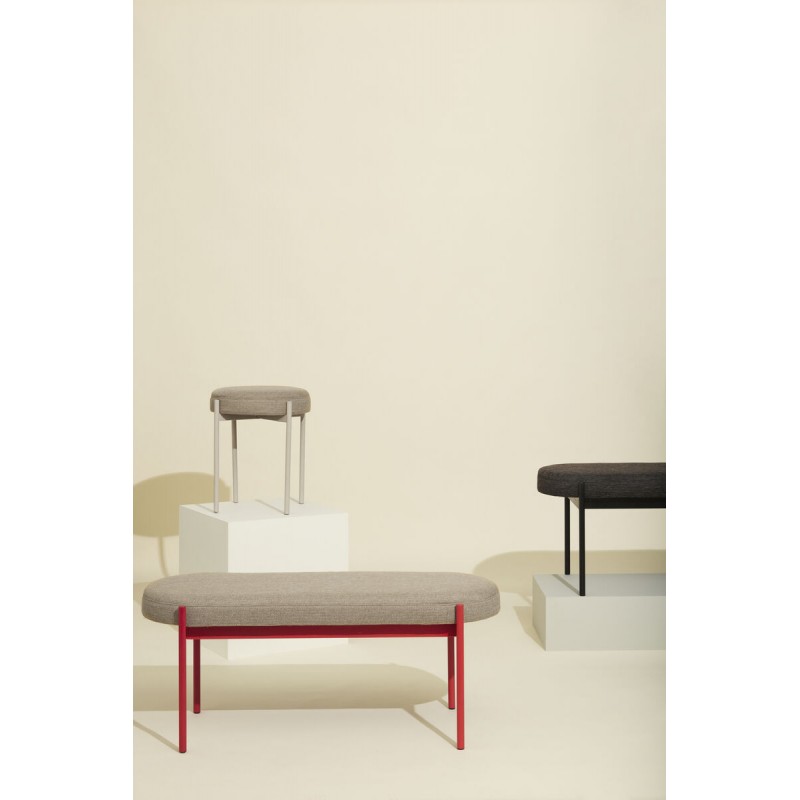 banc design rouge metal tissu beige sable mousse hubsch klint