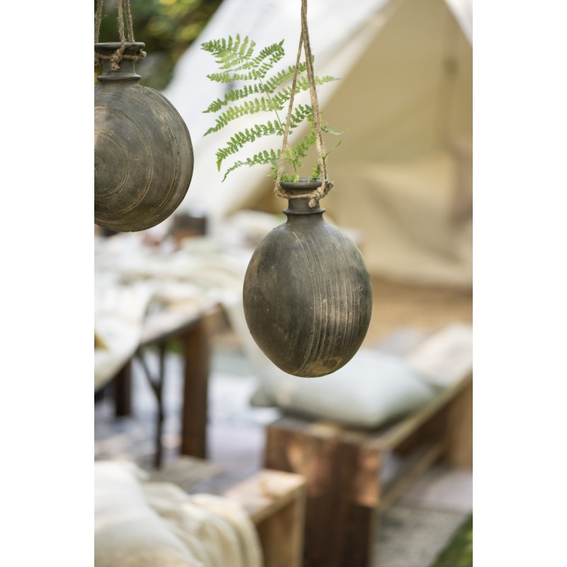 vasesuspendu terre cuite argile rond vintage corde jute iblaursen