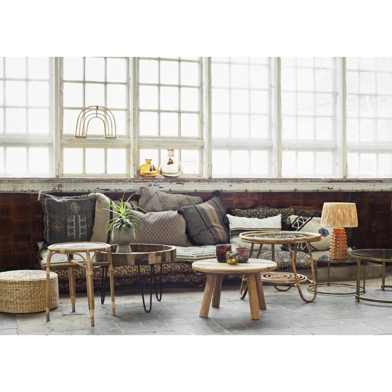madamstoltz housse coussin lin blanc vert rayures brode pompons