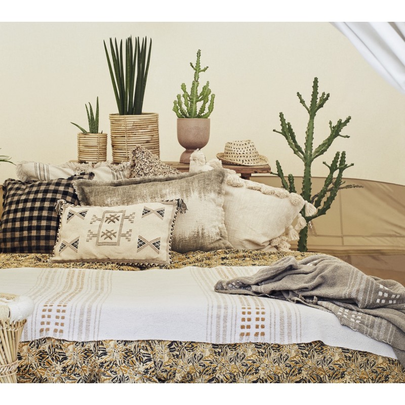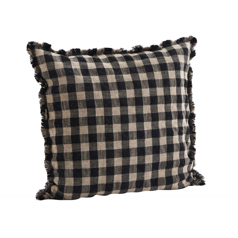 housse coussin carre coton a carreaux noir marron beige madamstoltz
