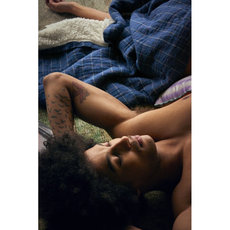 hk living plaid bleu a carreau doublure sherpa fausse fourrure