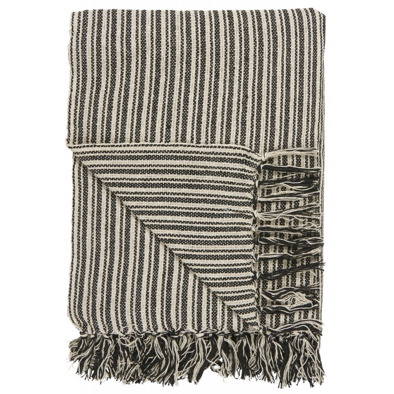 ib laursen plaid coton raye noir blanc franges