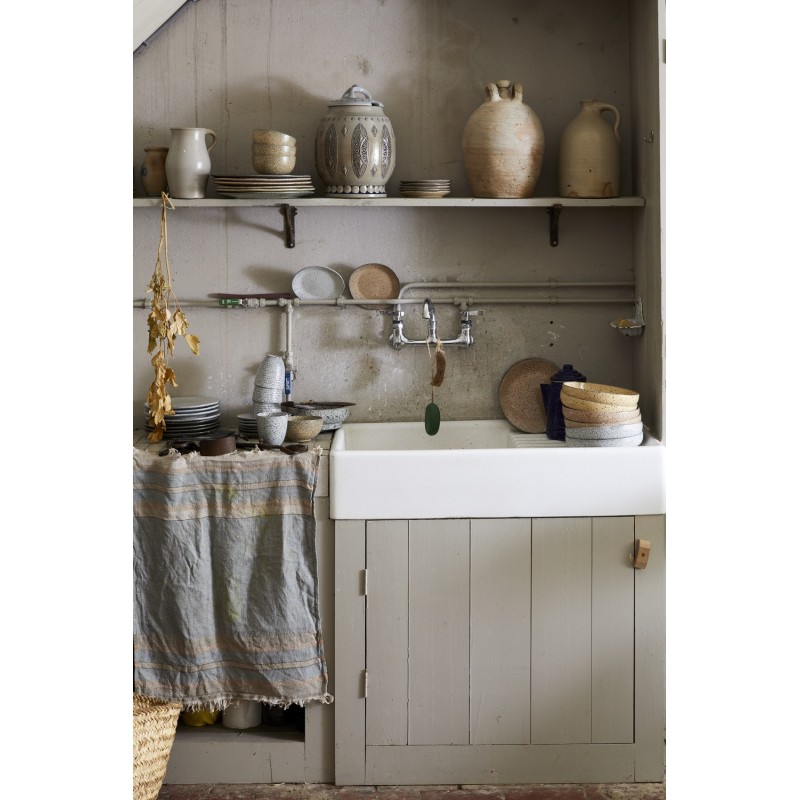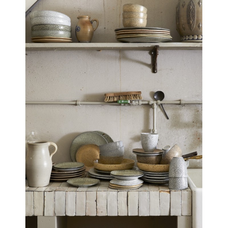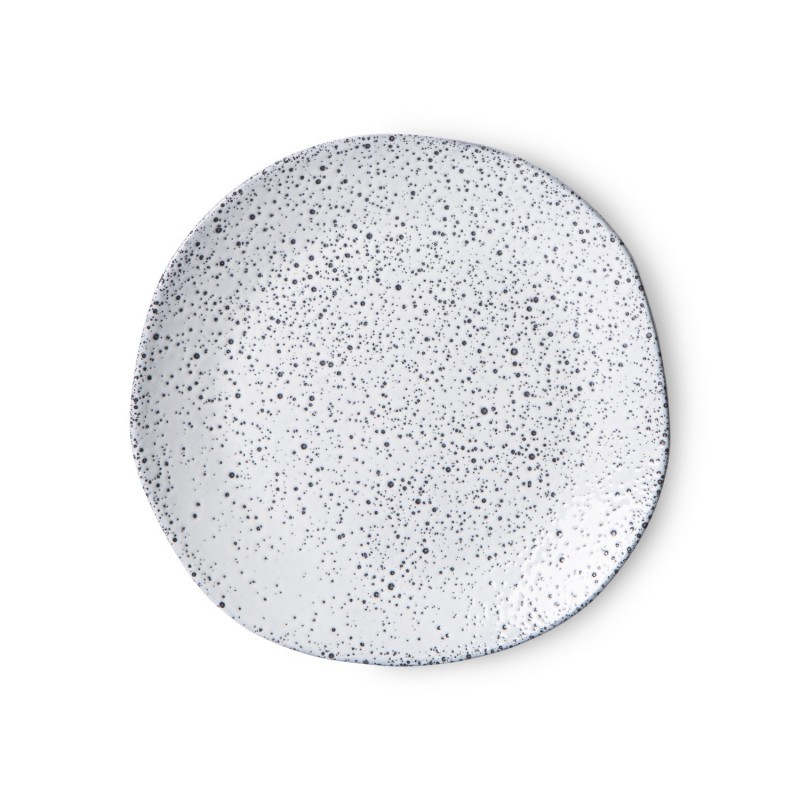 assiette a dessert organique gres blanc points noirs mineral hk living