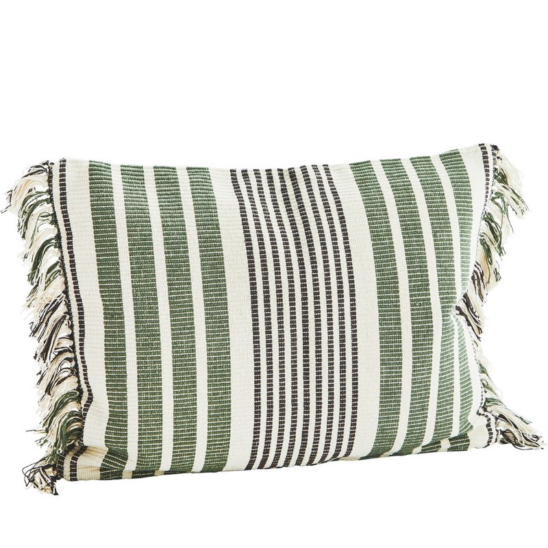 madam stoltz grande housse coussin coton raye vert franges