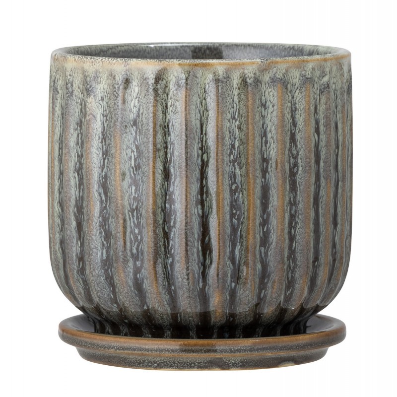 cache pot gres emaille vert artisanal soucoupe bloomingville drago