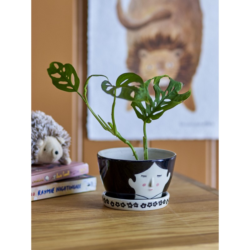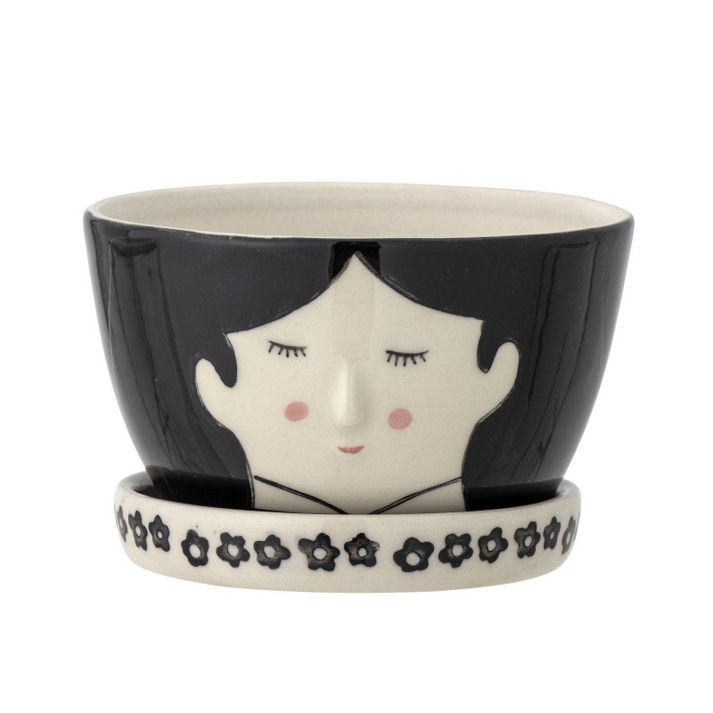 cache pot peint dessin visage soucoupe bloomingville carolin