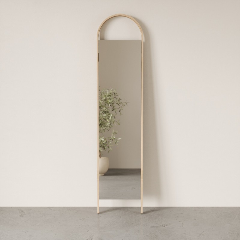 grand miroir a poser cotre mur bois clair design umbra bellwood