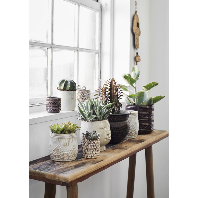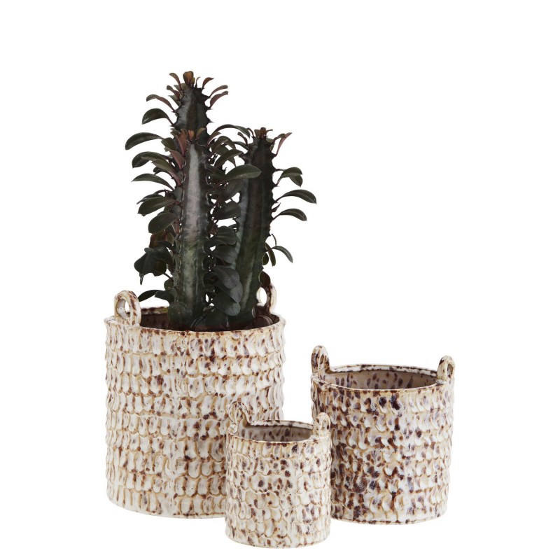 pot de fleur artisanal rustique gres beige madam stoltz set de 3
