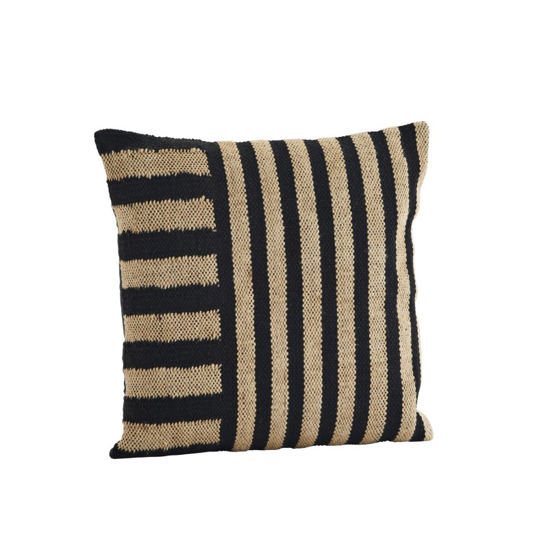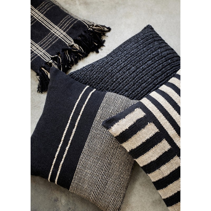 housse de coussin salon raye carre noir naturel jute madam stoltz