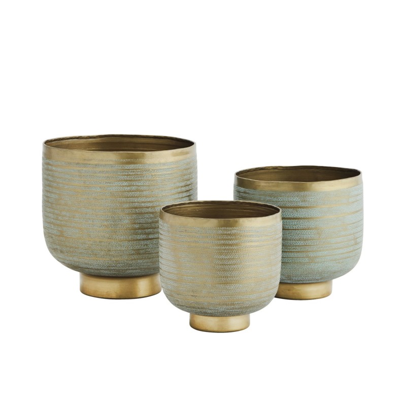 cache pot dore aluminium recycle martele madam stoltz set de 3