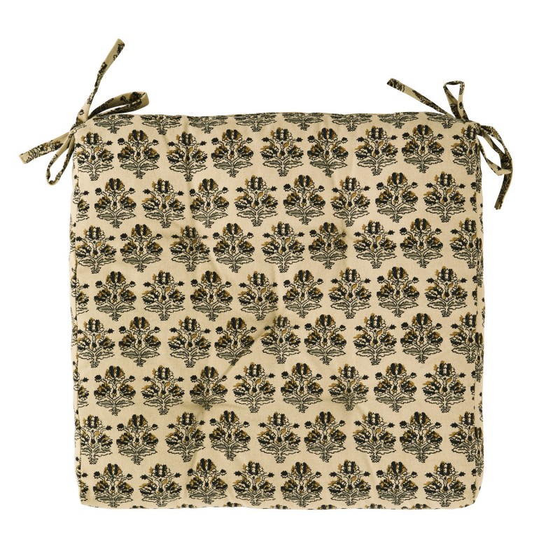 galette de chaise coton beige motif imprime indien madam stoltz