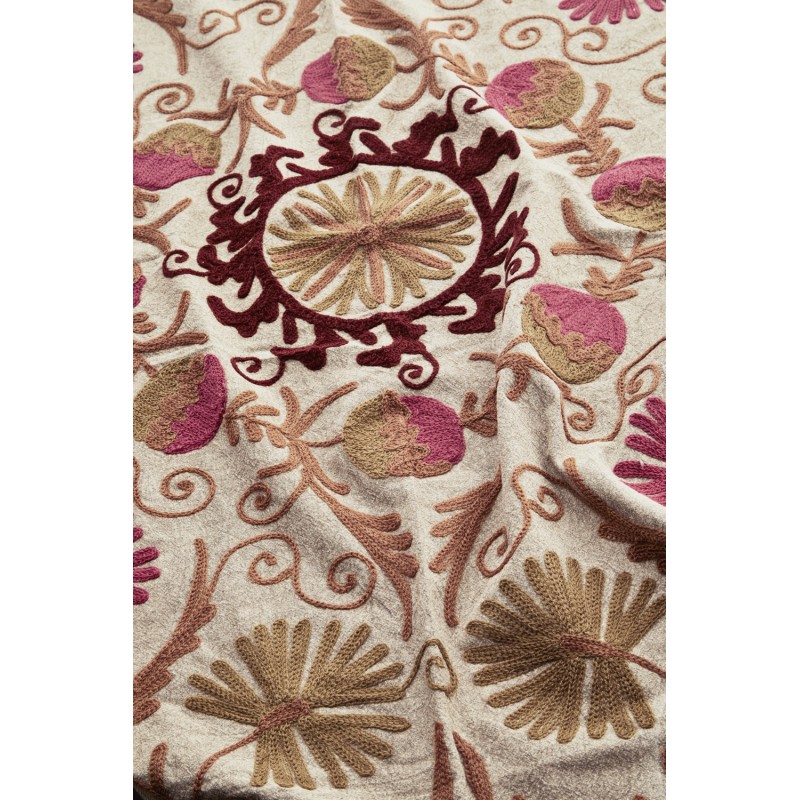 couvre lit brode persan beige rose madam stoltz suzani