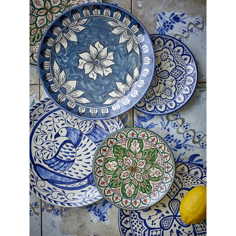 assiette plate peinte la main bleu mediterraneen bloomingville karlie