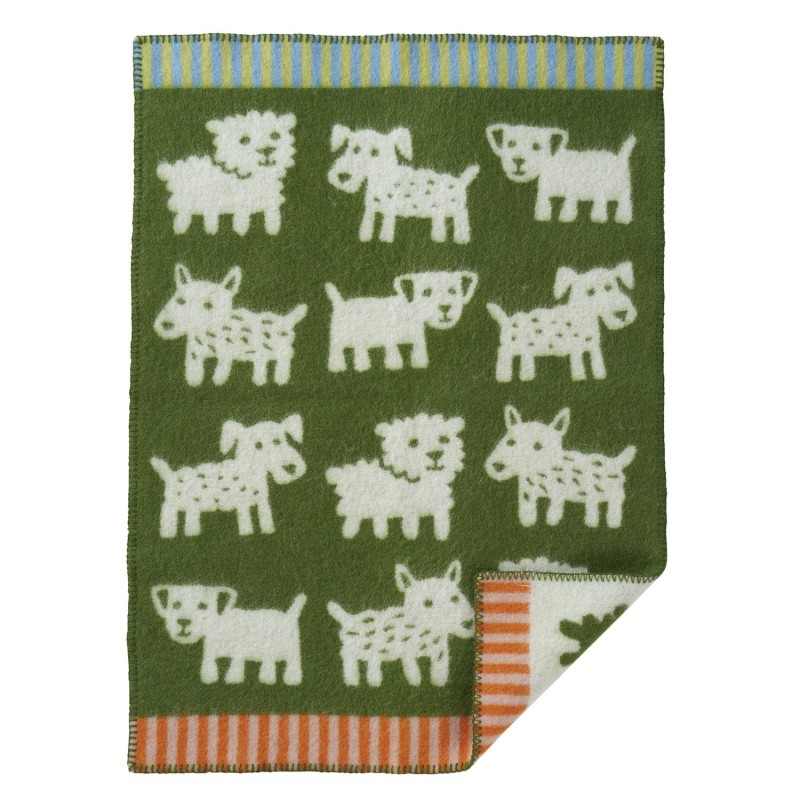 couverture laine agneau bio bebe verte petits chiens klippan voff