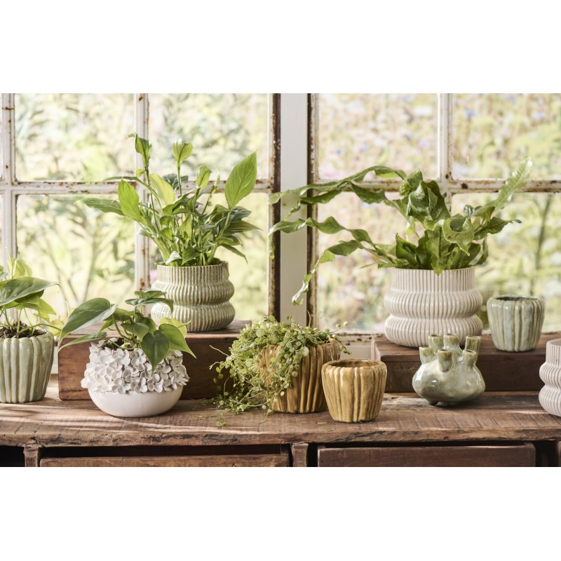 cache pot deco gres emaille blanc fleurs sculptee relief 3d ib laursen