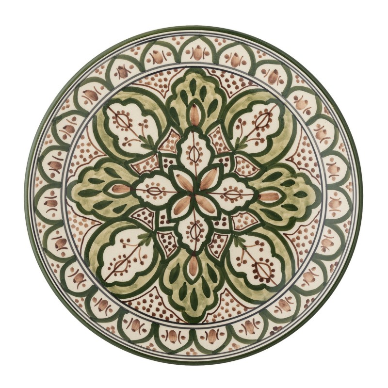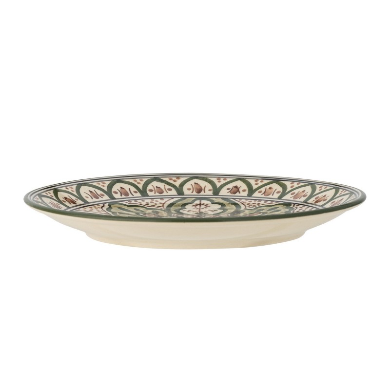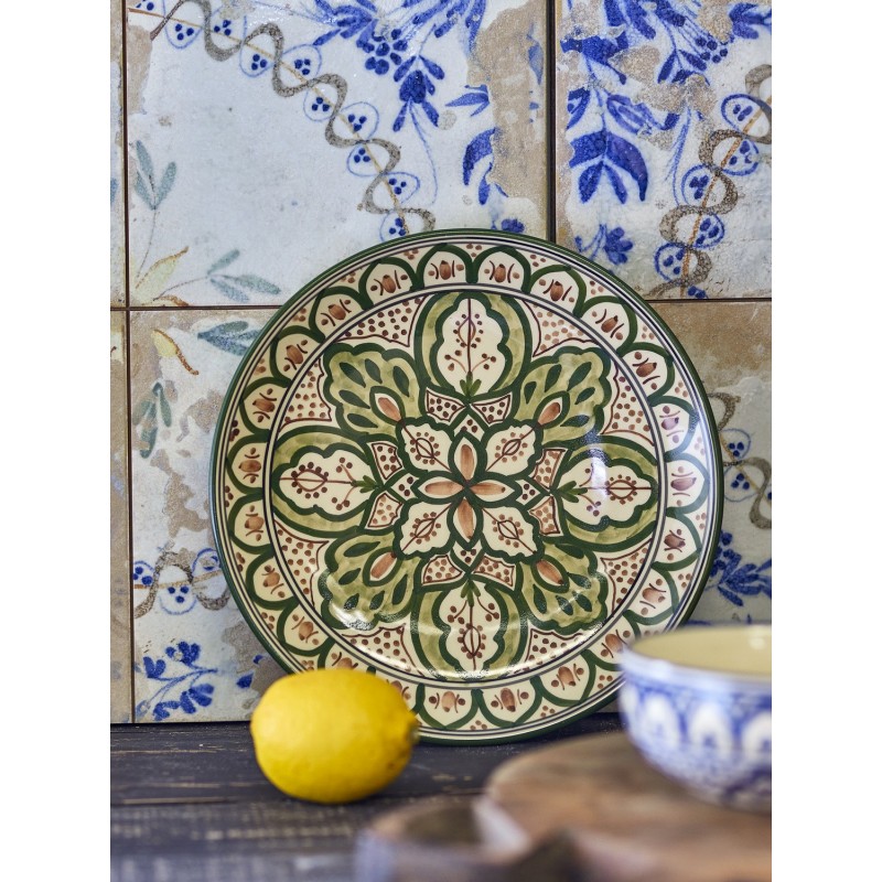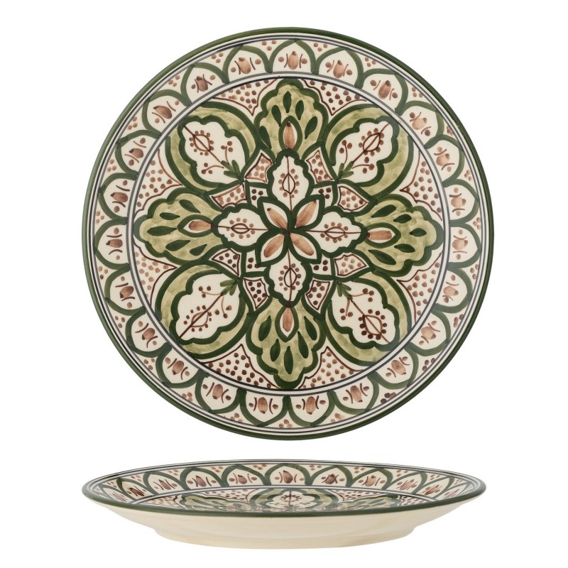 assiette plate gres peint main vert motif oriental bloomingville karlie