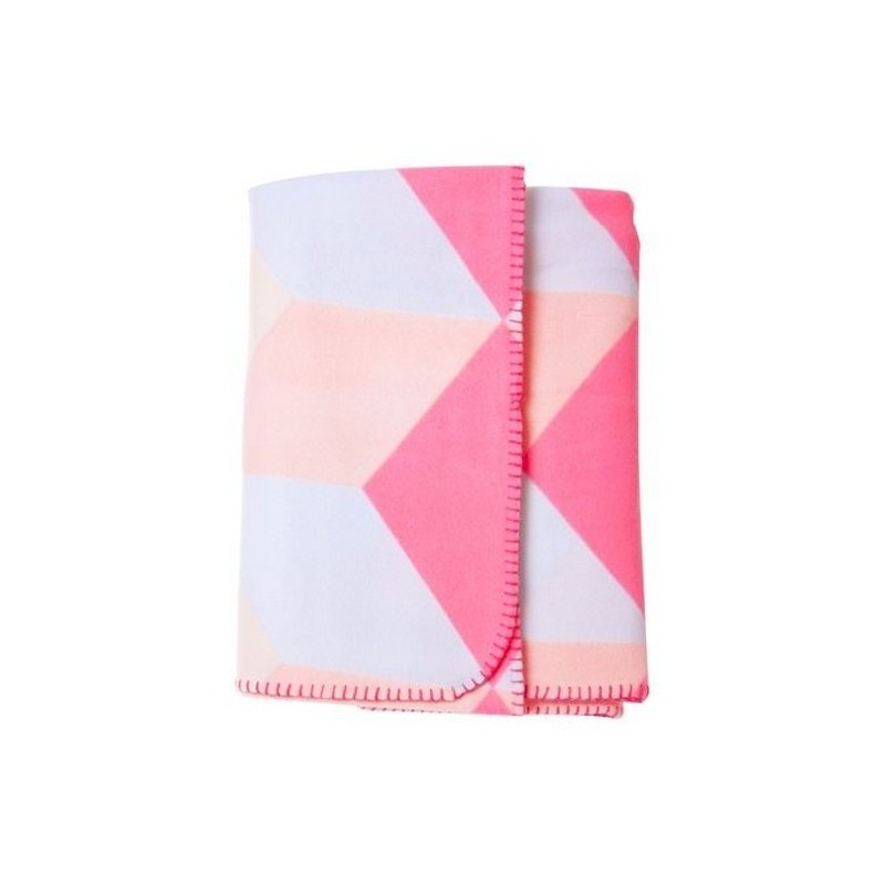 Plaid déco rose motifs géométriques present time block