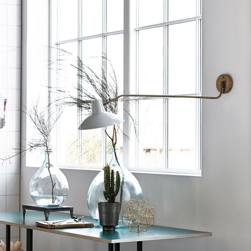 House Doctor Desk Adjustable Arm Brass Wall Lamp, white