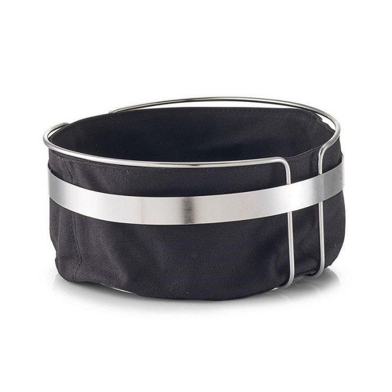 corbeille a pain ronde coton noir et inox zeller 27249