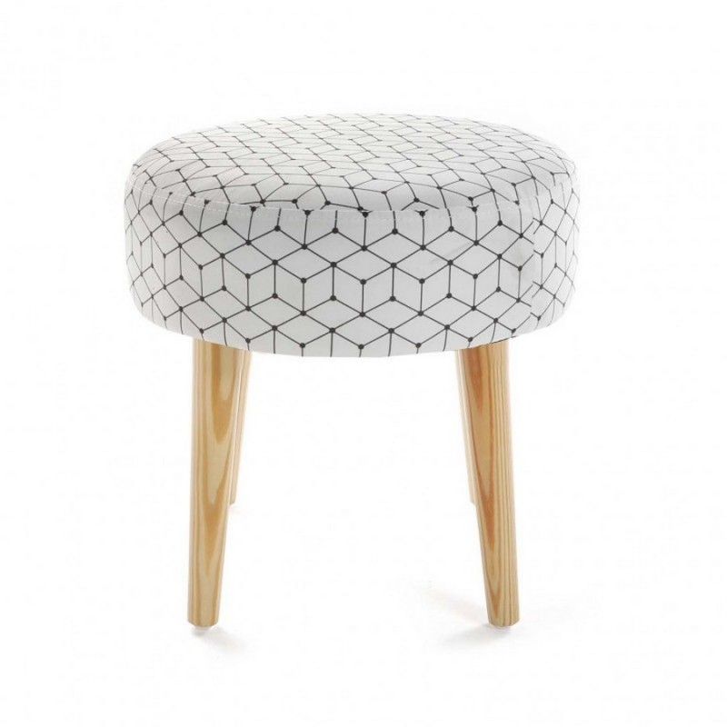 tabouret rond tissu design scandinave 4 pieds bois versa