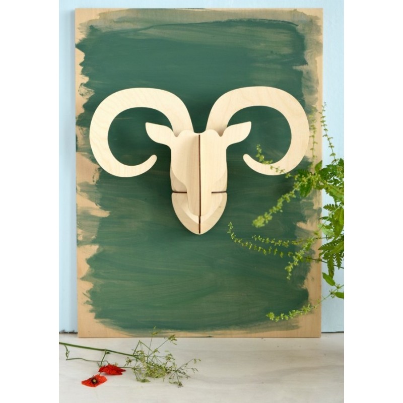 decoration murale tete de mouflon en bois naturel studio roof TTM50