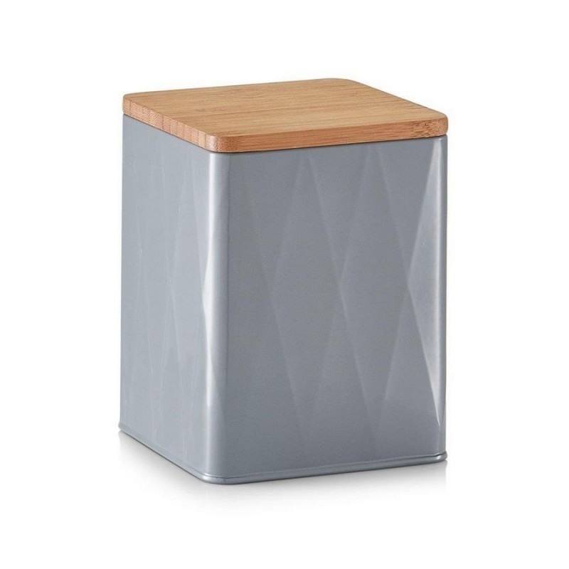 zeller boite de conservation metal gris couvercle bois bambou 1500 ml